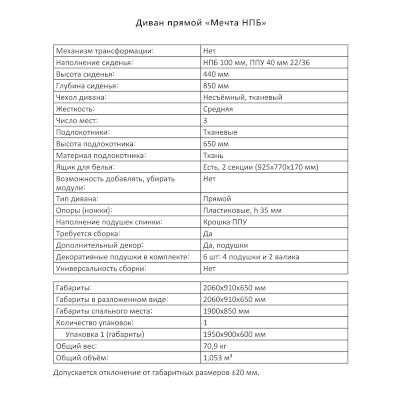 Диван Мечта НПБ (Аквилон) продается в интернет-магазине mebel-v-ivanovo.ru по цене 36 507 руб. Есть доставка по Иваново и Ивановской области. Возможность подъема на этаж и сборки уточняйте у менеджера по телефону 8(800)505-27-11.
