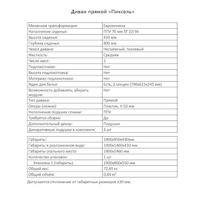 Диван Пиксель (Аквилон) продается в интернет-магазине mebel-v-ivanovo.ru по цене 30 299 руб. Есть доставка по Иваново и Ивановской области. Возможность подъема на этаж и сборки уточняйте у менеджера по телефону 8(800)505-27-11.