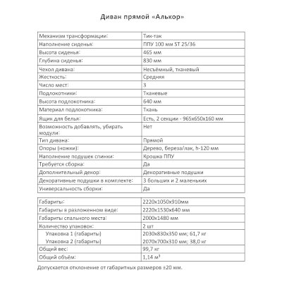 Диван Алькор (Аквилон) продается в интернет-магазине mebel-v-ivanovo.ru по цене 63 963 руб. Есть доставка по Иваново и Ивановской области. Возможность подъема на этаж и сборки уточняйте у менеджера по телефону 8(800)505-27-11.