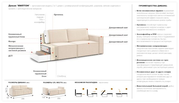 Диван Милтон (Империал) продается в интернет-магазине mebel-v-ivanovo.ru по цене 60 770 руб. Есть доставка по Иваново и Ивановской области. Возможность подъема на этаж и сборки уточняйте у менеджера по телефону 8(800)505-27-11.